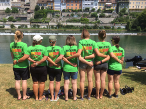 Sieben Damen der Damenriege, wissen dass Weber, Maurer und Fuhrmann nicht Namen von hübschen Jungs sind, sondern Knöpfe die beim Schnürparcours am eidgenössischen Pontonierwettfahren absolviert werden mussten.